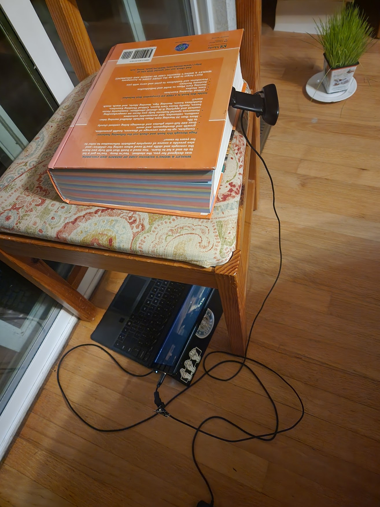 I chose to use the Logitech webcam because it was easier to set that up than to use the cameras on the Surface Pro. Surface Pro cameras are notoriously hard to use under Linux, and I should know since I'm the one who diagnosed why Surface Pro kernels started failing to build the Video-4-Linux module a few years ago.How to spy on your cats all night long.