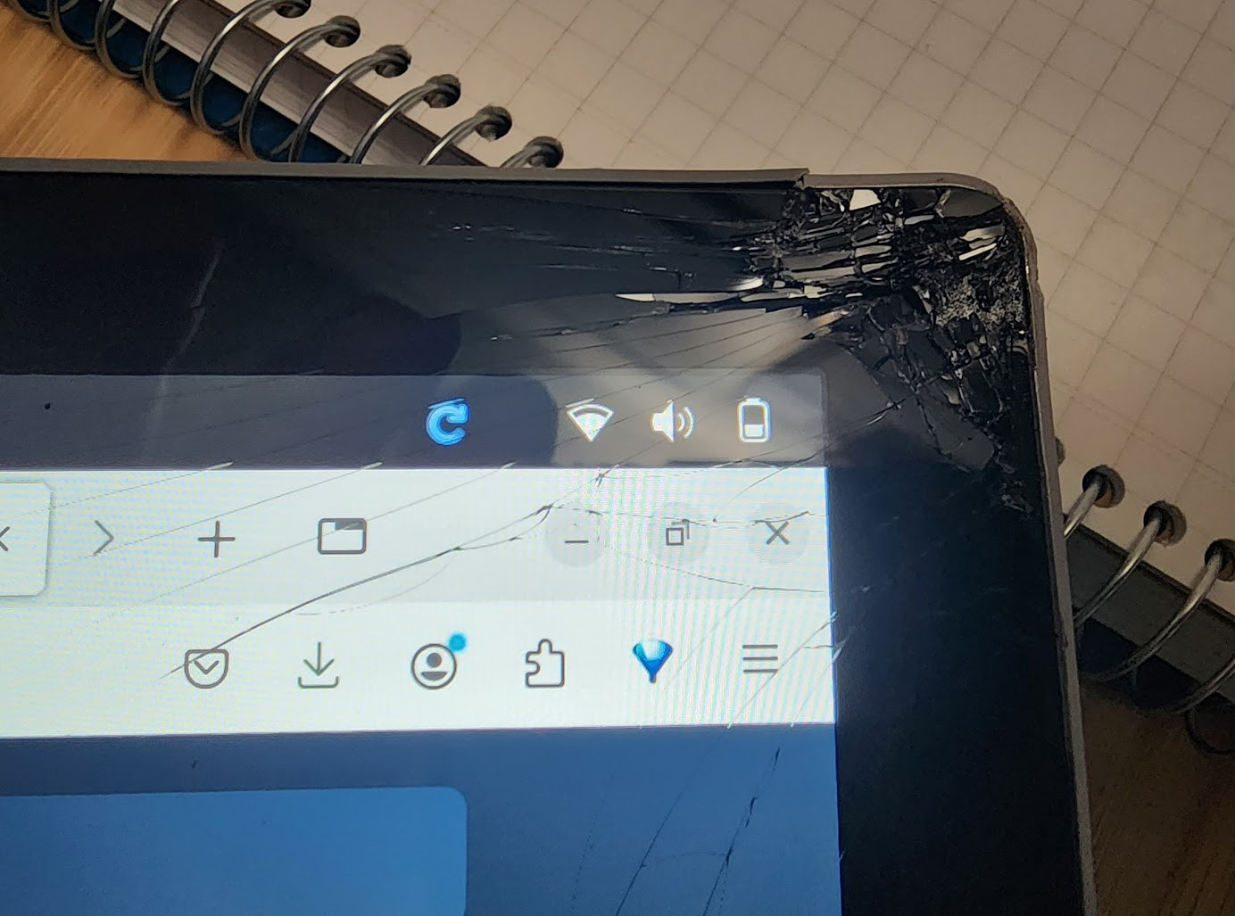 My travel laptop is a Surface Pro 6. I have another Surface Pro 6 with a badly cracked screen that usually sits in a drawer. The screen still works, but not as a touch screen, and the shattered corner means it shouldn't leave the house, but it's perfect for this job.
